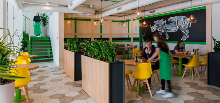 Los arquitectos de TSEH Architectural Group se encontraban desarrollando el proyecto de revitalización y modernización de Unit, en Kiev, cuando notaron que la superficie destinada a construir la escuela “Unit Factory” no contaba con el espacio necesario para incluir una gran cafetería.
